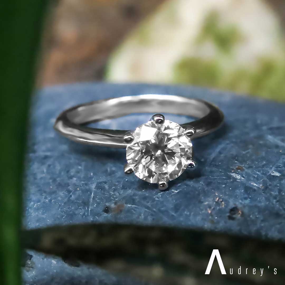 The most classic look of alldiamond engagement ring, the Linda. The solitaire engagement ring is a truebeauty featuring a sleek knife-edge band elegantly holding a brilliant, roundcut center diamond, captured by six surrounding prongs for a timeless displayof love.