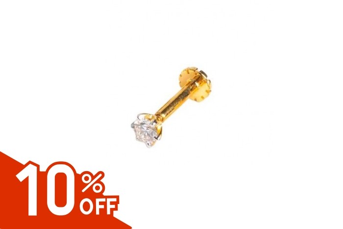 18K Yellow gold diamond solitaire nose pin and diamond studded Nose pin (Mukuthi) makes for the perfect little gift for the auspicious occasion.