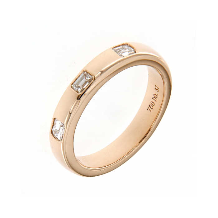 18k Rose Gold Diamond Emerald Cut Band (Ring) with round brilliant diamonds.