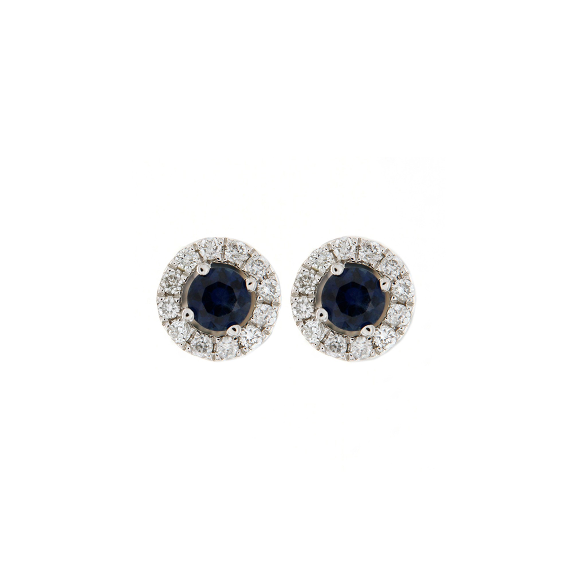18K White gold gemstone diamond stud with blue sapphire and round brilliant natural diamond.